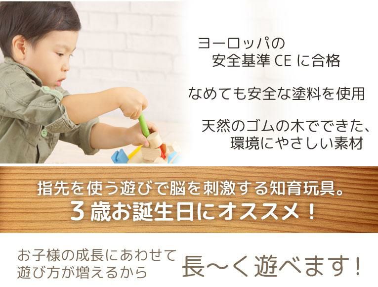 アイムトイシリーズは「握る」「つなげる」「通す」「結ぶ」といった指先の動きを追求して作られた木のおもちゃです。