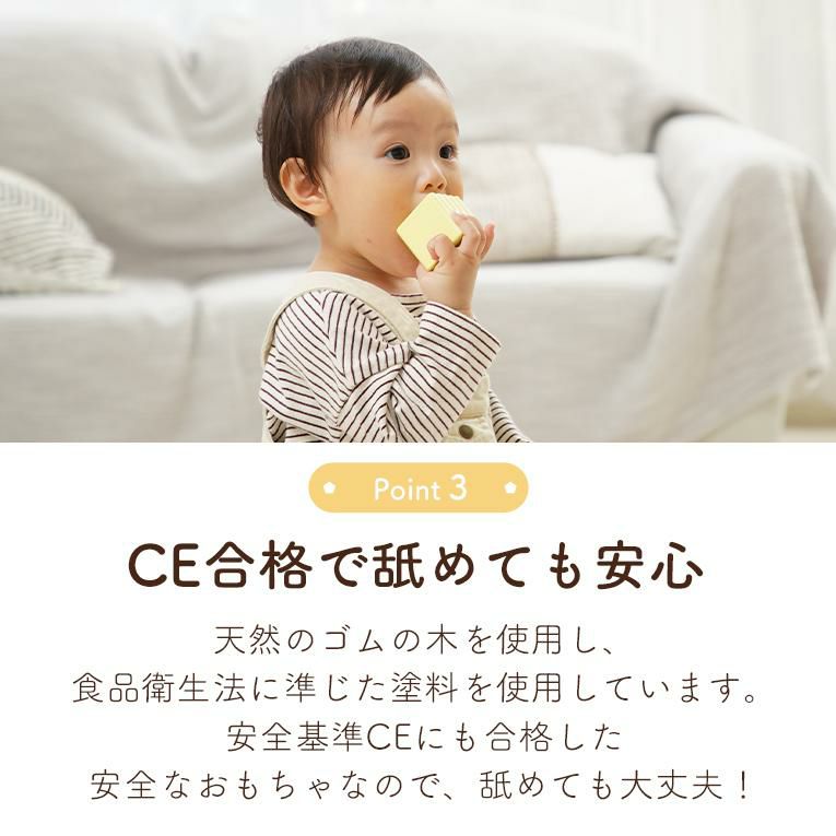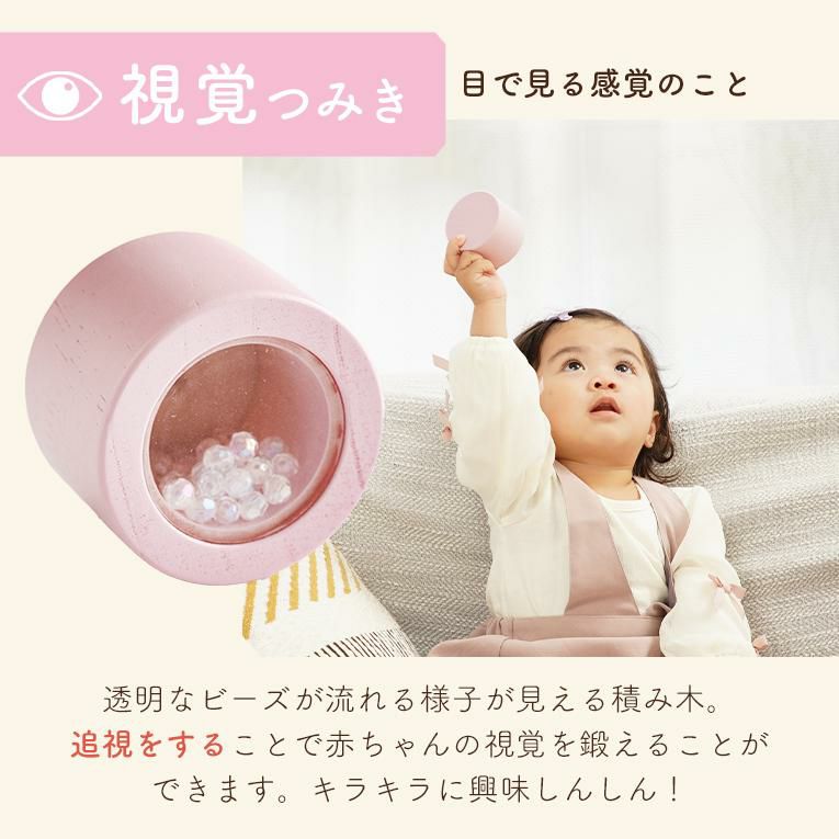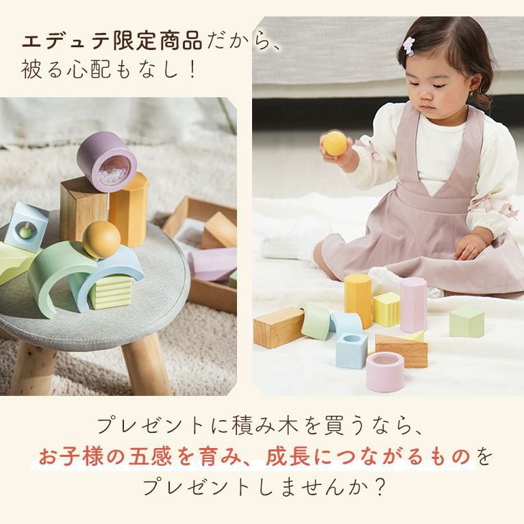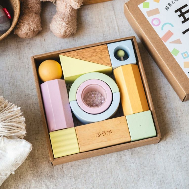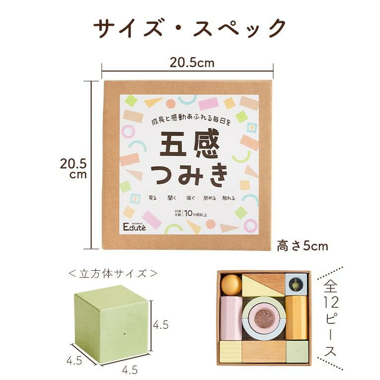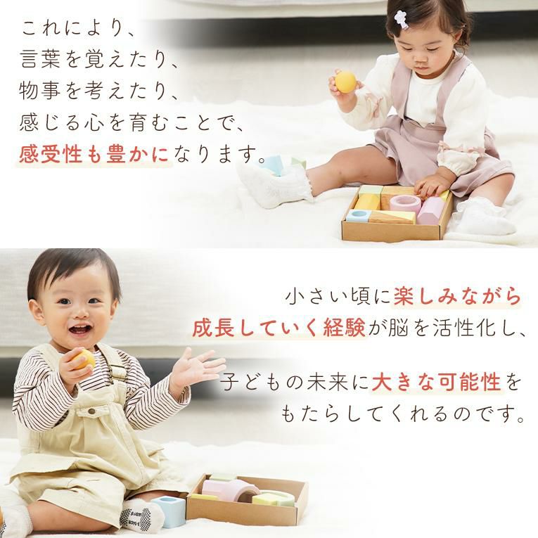 | 備考 | 視覚・聴覚・味覚・触覚・嗅覚の五感を育む5つの仕掛けパーツが入った積み木です。 出産祝いなどに気軽に送りやすいプライス♪