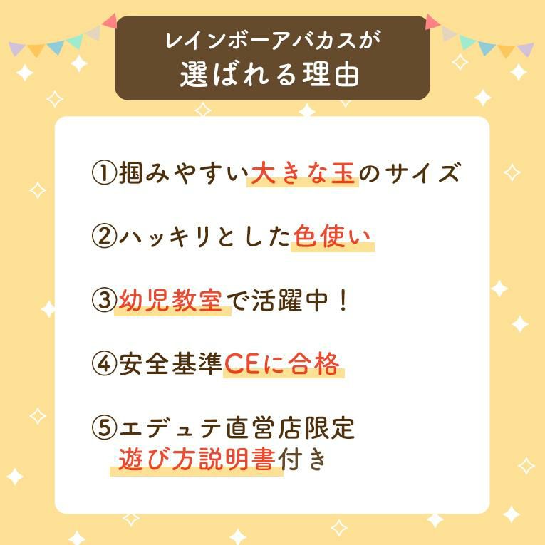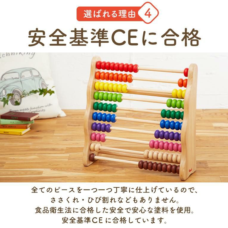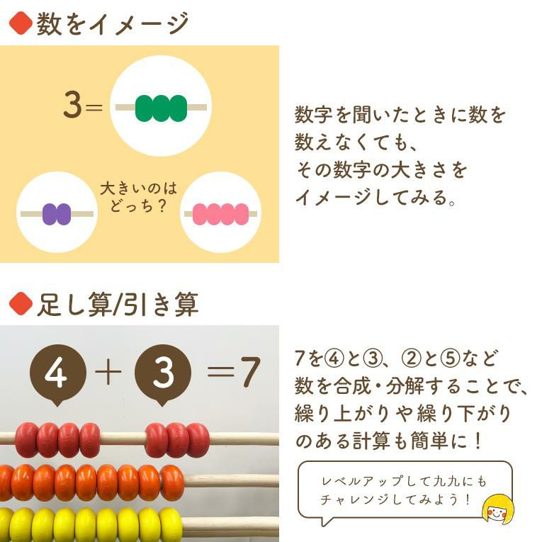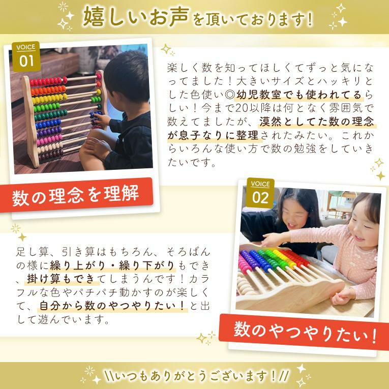 | 備考 | TV「所JAPAN」で紹介されました!10段のカラフルなそろばんの木のおもちゃ。1段に10個のそろばん玉がセットされており、合計100個のそろばん玉を使うことができます。そろばん玉をスライドさせて数の数え方を学んだり、100までの足し算や引き算、掛け算や割り算もできます。立てても寝かせても使える優れもの!